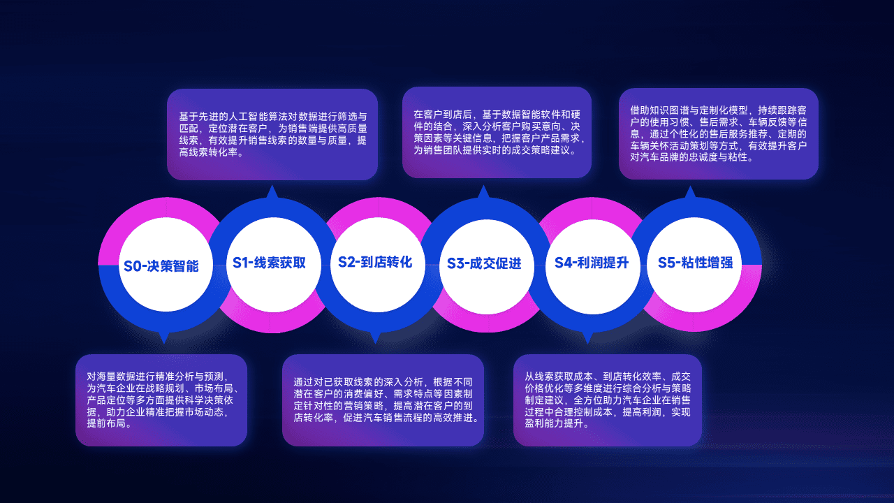 通过拓宽潜在客户来源、、优化线索分配并提高到店转化率,,,,以增强销售效率。。。同时,,利用线索数据不断优化分析模型,,,有效提升转化率,,,扩大营销影响力。。。。